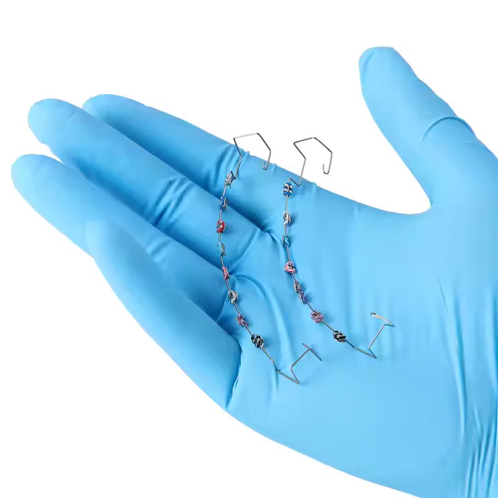 Fil orthodontique en acier : relie les bagues et exerce une pression douce mais continue pour déplacer progressivement les dents.